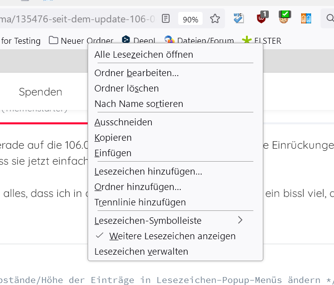 Seit ich das Update auf Version 106.0.2 durchgeführt habe, sind im Kontextmenü manche Zeilen nach rechts eingerückt.