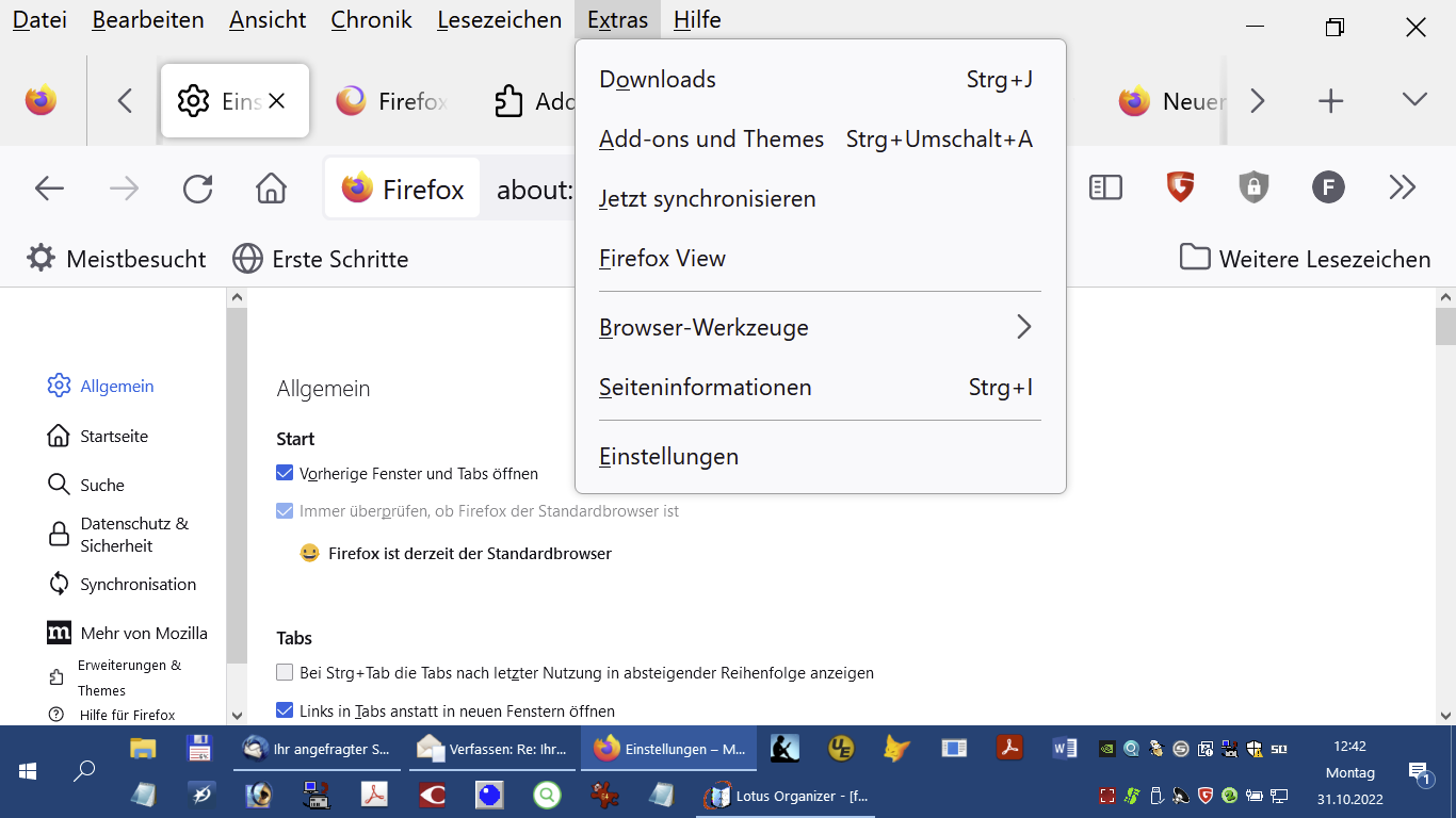 rekem: Man sieht in deinem Screenshot, dass Firefox vollkommen überdimensioniert dargestellt wird, wenn man das mal mit deinem Windows vergleicht. Ist das nur bei Firefox so oder auch bei anderen Anwendungen? Und kam das auch „plötzlich“ oder wurde Firefox schon immer so bei dir dargestellt?