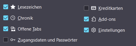 Passwörter und Kreditkarten speichere ich nicht im Firefox, deswegen brauche ich diese Daten auch nicht synchronisiert.