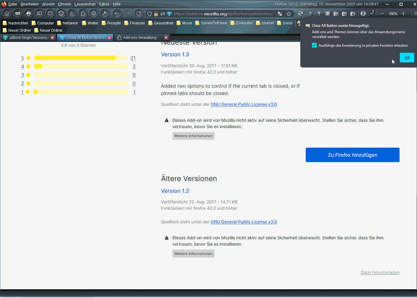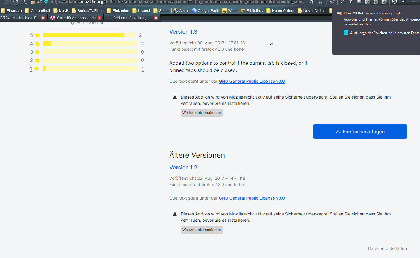 Wenn man sich eine ältere Datei-Version eines Addons installiert und dann manuell auf 'Auf Updates überprüfen' geht, dann zeigt sich genau das gleiche Verhalten wie beim Skript, welches in #1 von 2002Andreas beschrieben wurde: