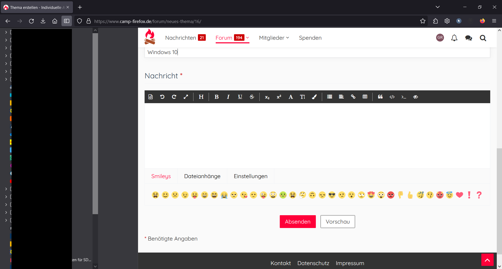 nach vielen vergeblichen Selbstversuchen bitte ich nun doch euch um Hilfe: Seit dem Update auf FF 107 verschwindet in der Sidebar die Scrolleiste, wenn ich die Sidebar verschmälere. Anbei ein Screenshot von der Sidebar im seeeehr breiten Zustand. Ziehe ich diese schmaler, verbleibt der Scrollbalken immer an derselben Stelle und verschwindet dann, wenn ich die Seidebar noch schmaler ziehe, irgendwann ganz.
