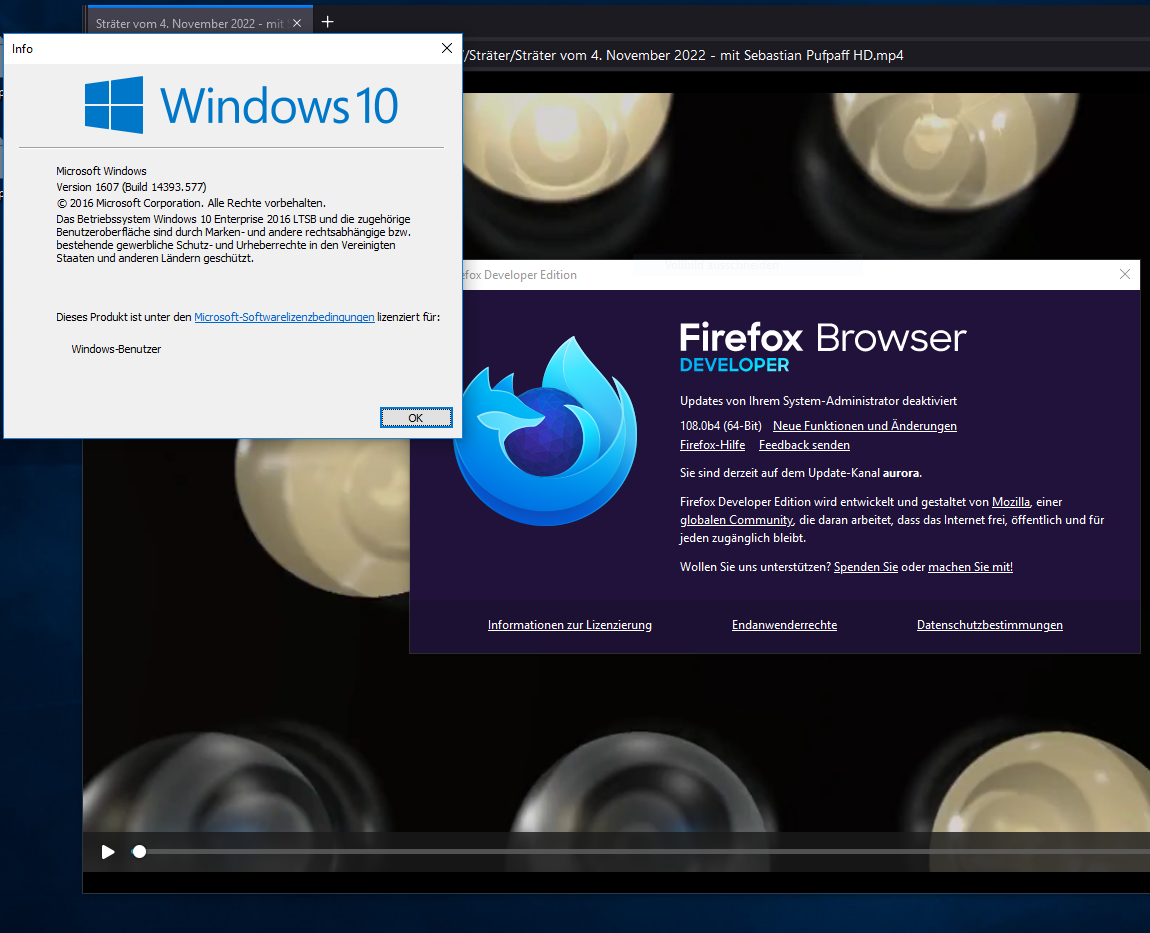 Seit einiger Zeit ist mein Firefox (108.0b4 64-Bit) komplett stumm und Videos werden nicht mehr angezeigt. In den Einstellungen (Datenschutz/Sicherheit/Automatische Wiedergabe) ist Audio und Video erlaubt. Firefox wurde neu installiert, Profile gelöscht und neu angelegt. Alles zunächst ohne Erfolg. Nur wenn ich ein Profil neu anlege und es umgehend über den Button <Profil zusätzlich ausführen> starte läuft in diesem zusätzlichen Fenster Audio/Video normal. Dieses neue Profil als Standardprofil zu verwenden oder über den Profilmanager zu starten hat nicht geholfen, Audio/Video ist wieder weg. Anders allerdings, wenn ich über ein vorheriges Standardprofil mittels "about:profiles" das zuletzt angelegte Profil wieder "zusätzlich ausführe" (Standard-Fenster kann dann ggf. geschlossen werden). Dann habe ich, solange ich dieses Zusatzfenster nicht beende eine normale Funktionalität.