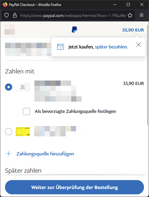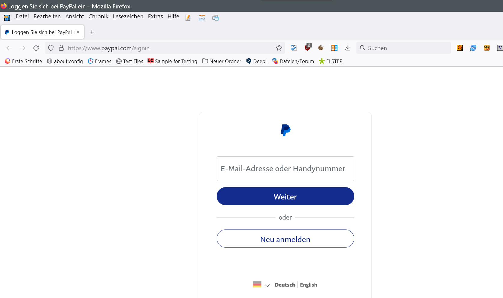 Wenn man sich bei Paypal anmeldet erscheint dort ja immer die Sprache des entspr. Browsers. Wenn ich mich aber mit Firefox anmelde, erscheint Englisch obwohl im Browser Deutsch eingestellt. Das ist nur mit Firefox so. Mit Edge oder Chrome klappt es bestens.