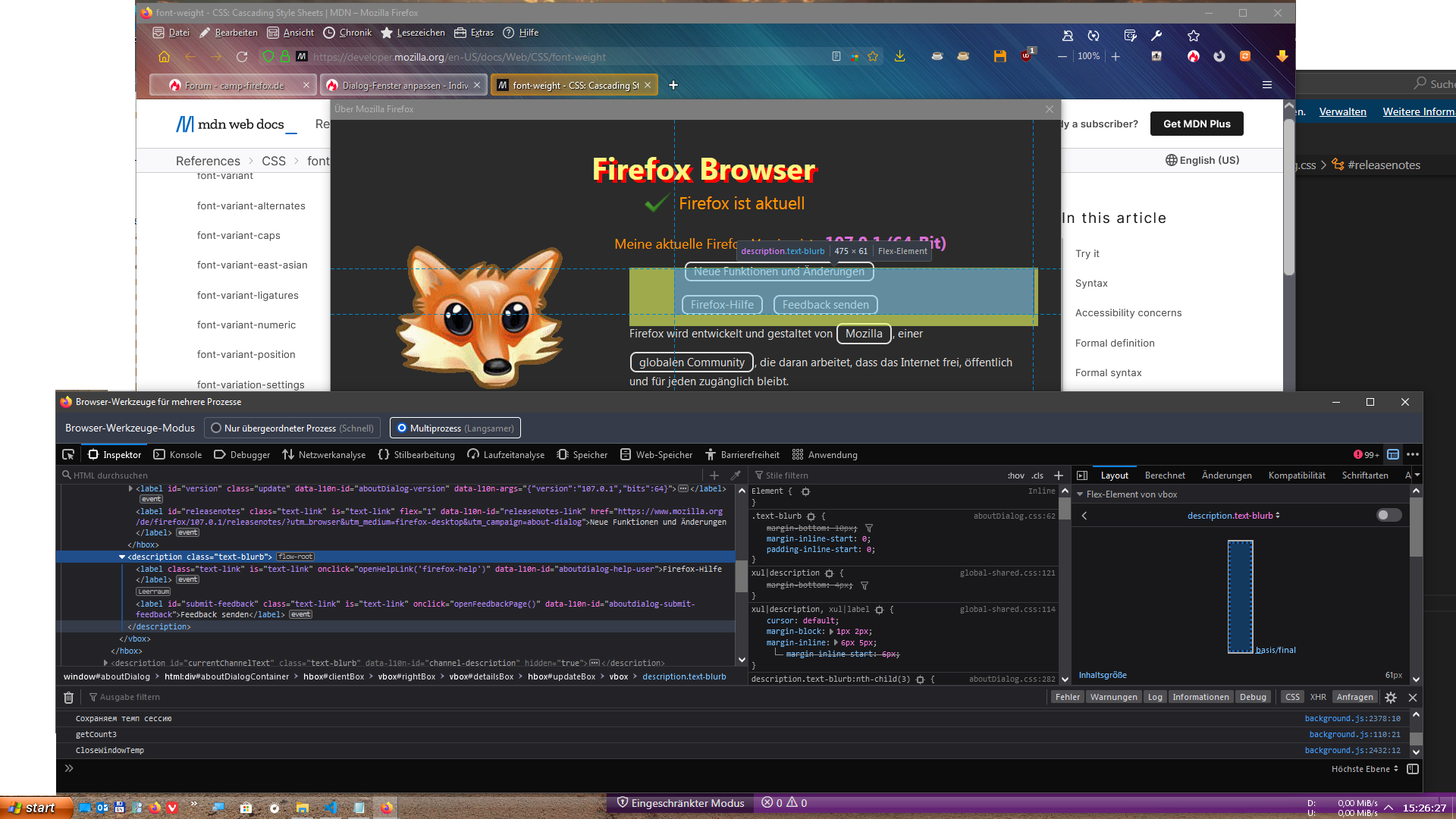 Moin, hier hat sich mit Firefox 107 bei mir was verstellt.: