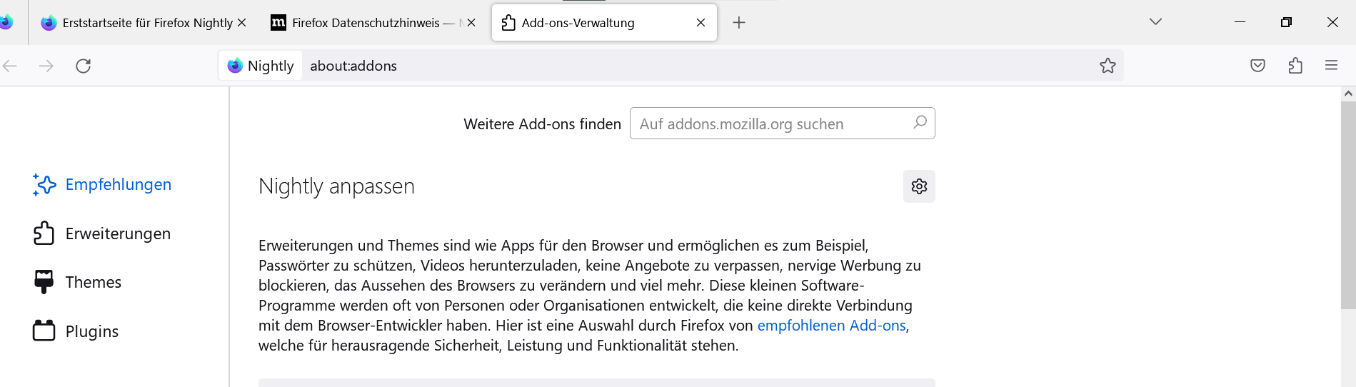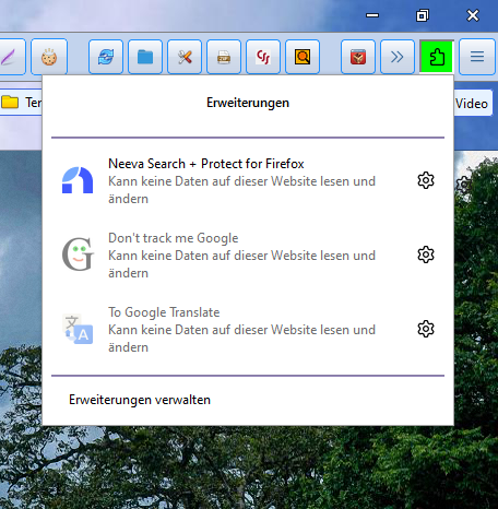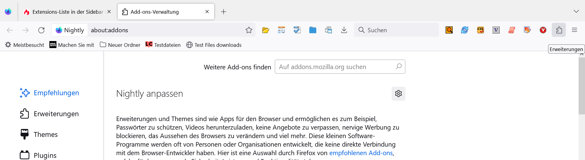 Extensions-Liste in der Sidebar möglich?
