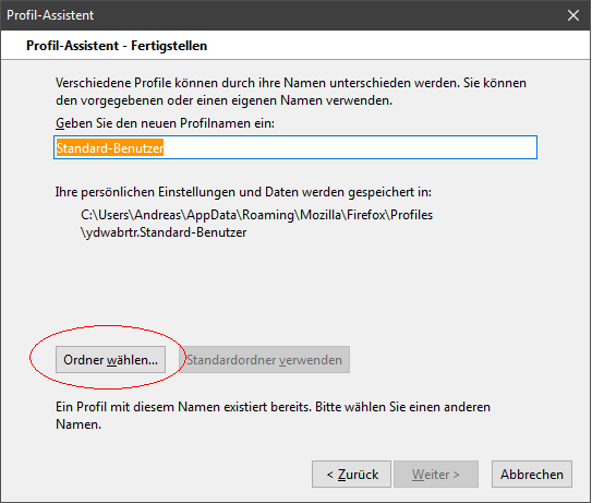 Somit korrelieren bei mir die Namen der Profile mit demselben Pfad passend zur Firefox-Version