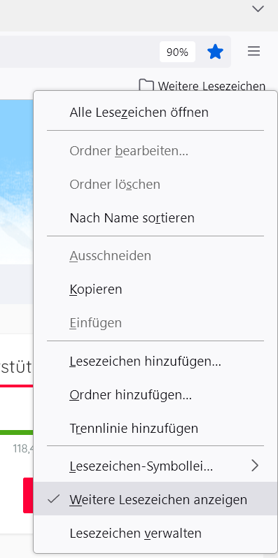 Dazu muss im Ordner Weitere Lesezeichen auch mindestens ein Eintrag sein: