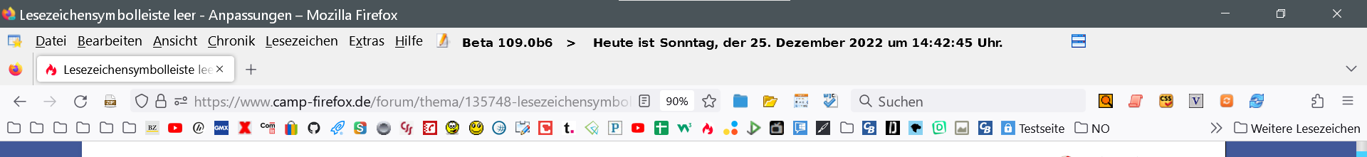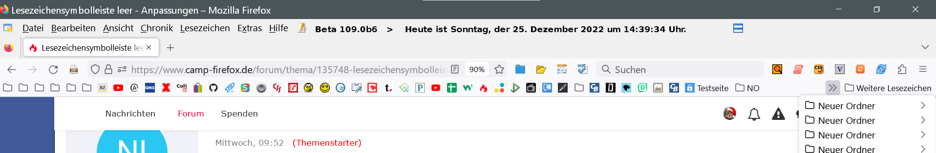Alles anzeigenDenn da müsste der "Overflow >> Button" und "Weitere Lesezeichen" zu sehen sein.