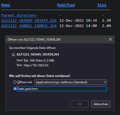 eine ip-cam speichert bilder und videos auf der eingelegten sd-karte. mit FF greife ich auf die und möchte ein gespeichertes video per mausklick mit dem videoplayer (MPC-BE x64) wiedergeben, nicht speichern oder gefragt werden, was FF damit machen soll.