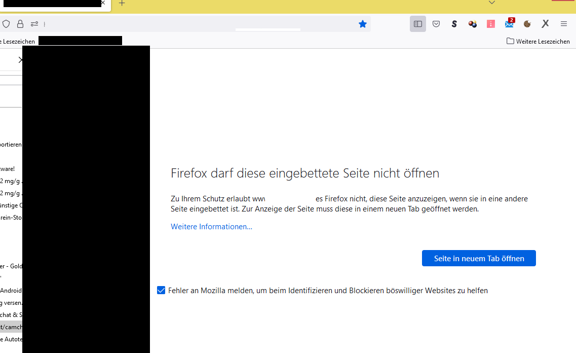 bis gestern wurde mir dies noch angezeigt von firefox und bei drücken auf neuer Tab kam die seite -------------
