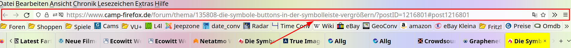 Damm wächst die Adressleiste auf 100% an (ganzer Breite). Auch wenn ich mir Testweise mal die Suchleiste zusätzlich anzeigen lassen möchte - macht FF auch nicht, er bleibt dann bei seiner langen Adresszeile