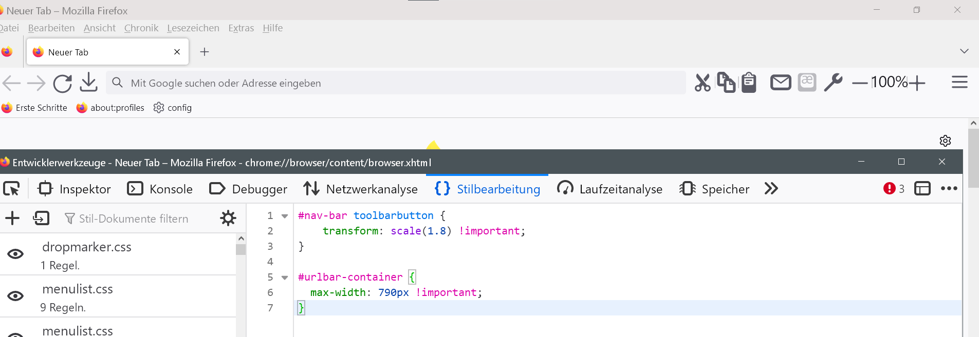 Gebe ich der Urlbar eine feste Breite, dann werden die Icons alle wieder angezeigt.