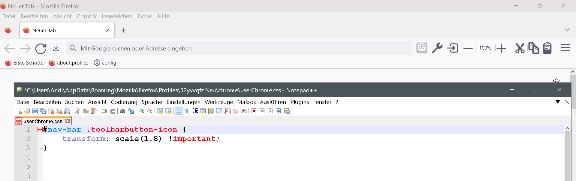 Da sind alle Icons auch ins Überhangmenü verschwunden, wenn man ein bestimmtes Skript verwendet hat. Deswegen hatte ich auch wegen der Windows-Skalierung gefragt...
