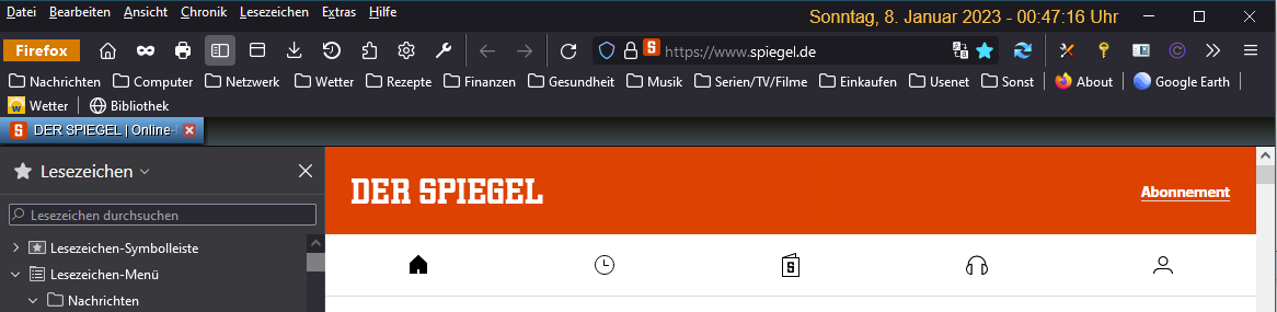 Seit heute, seit die Firefox - Version 92 (32bit) installiert worden ist, ist meine "Datum / Uhrzeit" nicht mehr sichtbar.