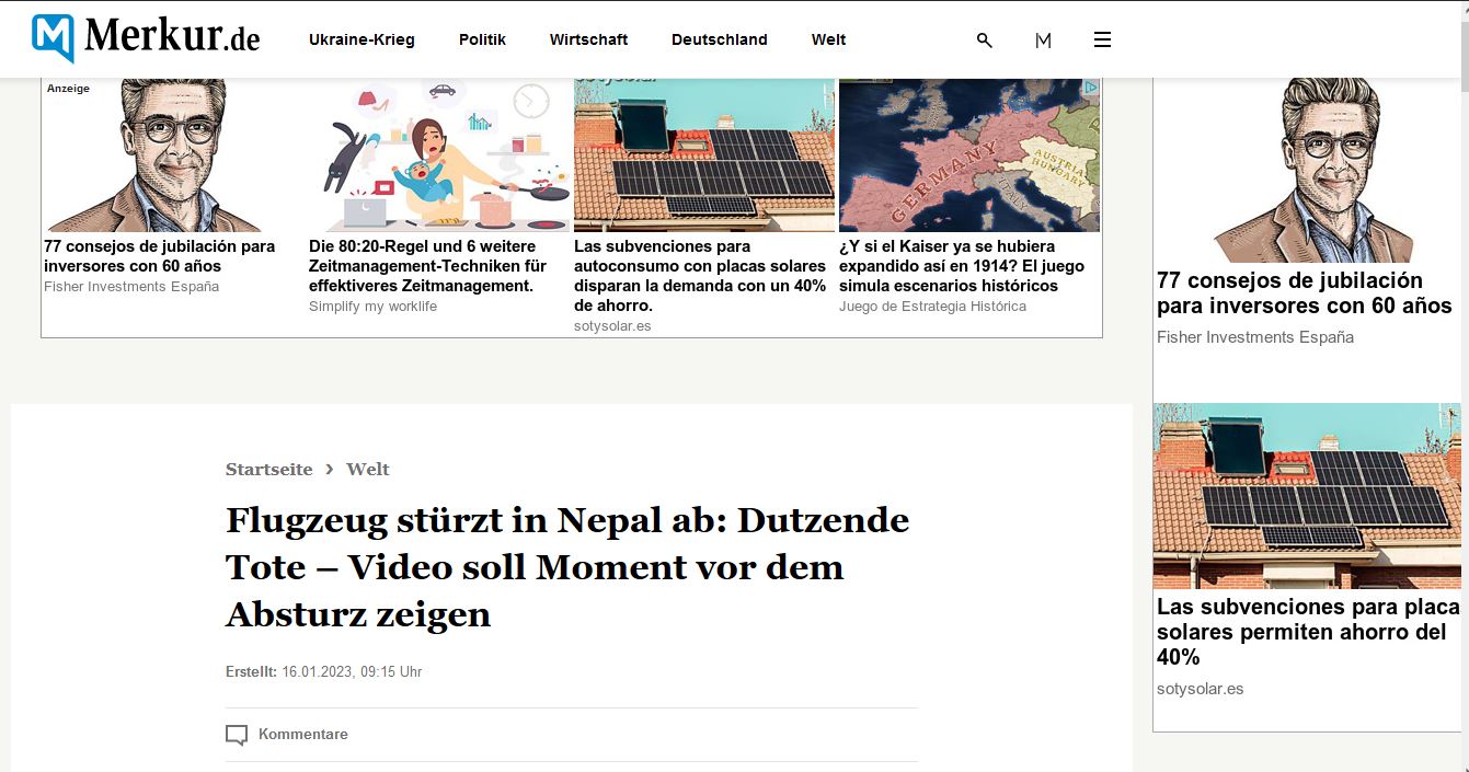 Diese Werbung erschien bei der deutschen Internetseite des Merkur.