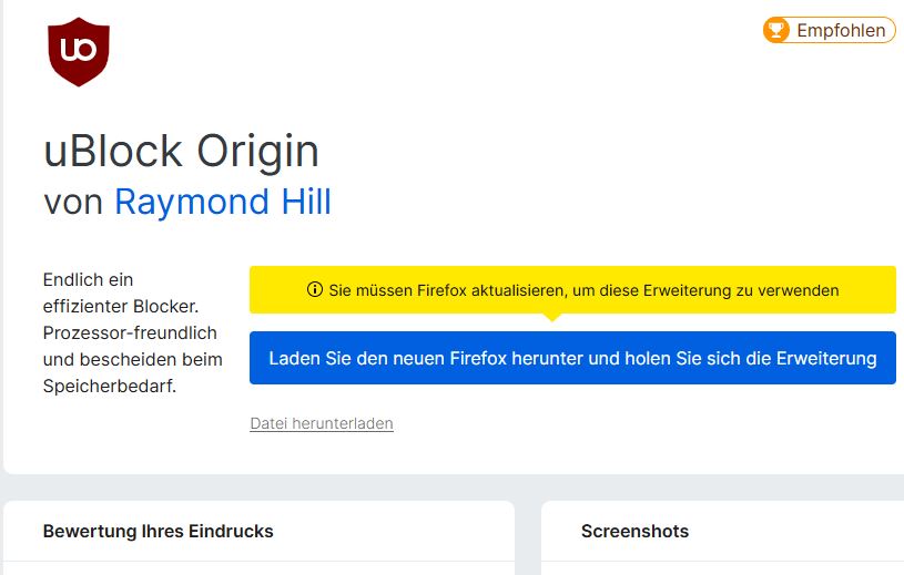 Dann macht eine neue Seite auf und schreibt, ich solle die Neuste Version Firefox installieren. Habe aktuell 108.2.0 Neuer geht nicht, Ich soll doch bitte den Browser aktualisieren?