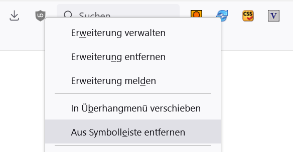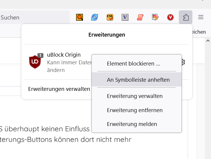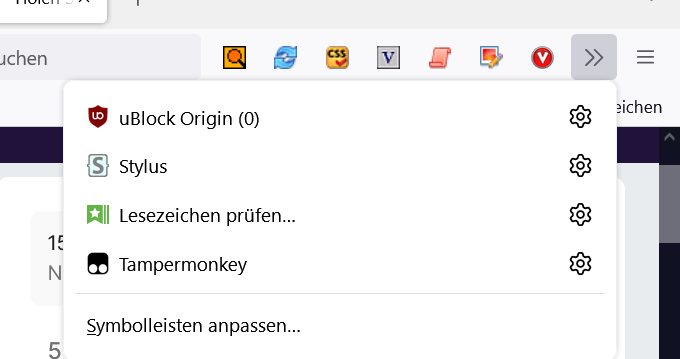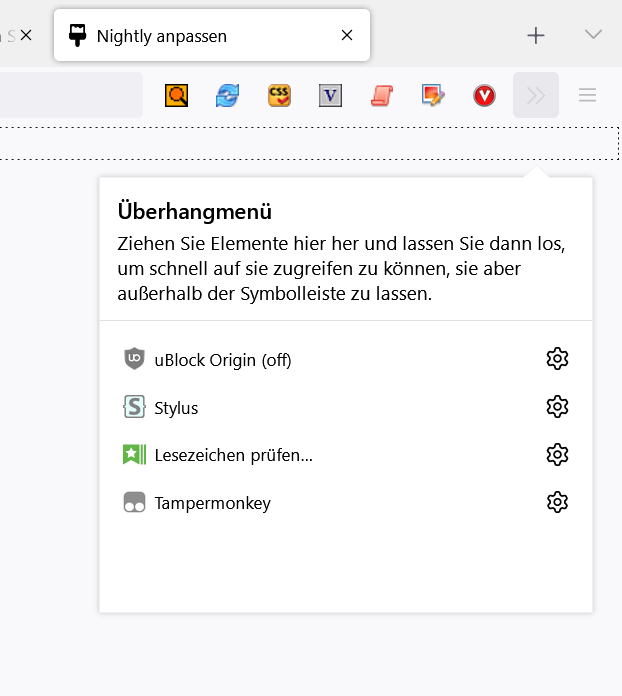 nur zur Klarstellung, und weil das 'Gerücht' schon seit einiger Zeit umgeht - ist es in 109 so, dass man generell Erweiterungen( -Buttons ) nicht mehr in das Overflow-Menu verschieben kann