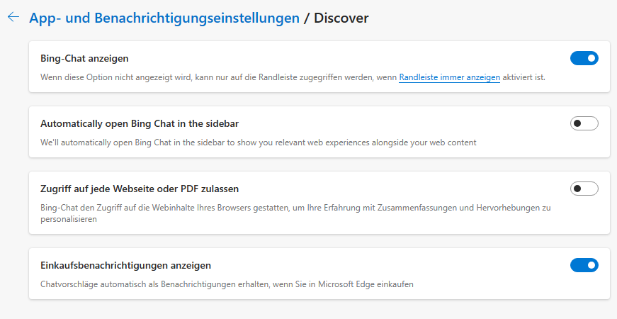 edge://settings/sidebar > "Discover"