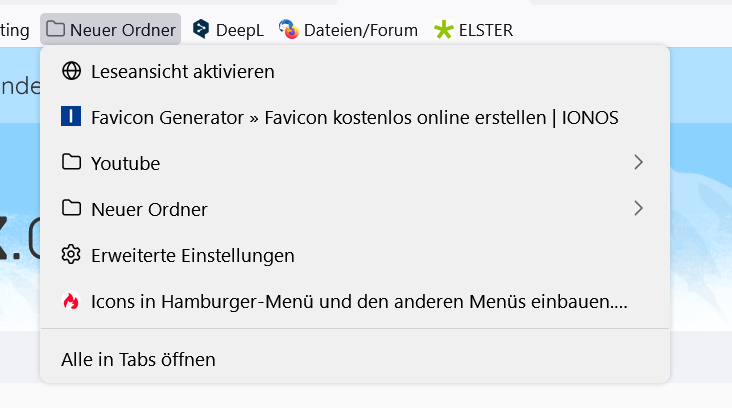 • Es geht nur um die Lesezeichen-Symbolleiste und dort um die von mir angelegten Ordner.