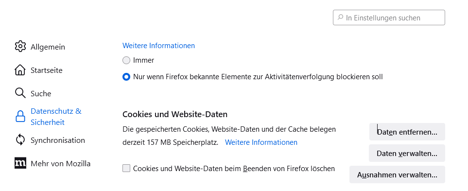Einführung des vollständigen Cookie-Schutzes im normalen Modus | Hilfe zu Firefox