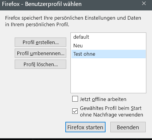 Da kannst du doch auswählen, welches der Profile gestartet werden soll, wenn du die Verknüpfung anklickst.
