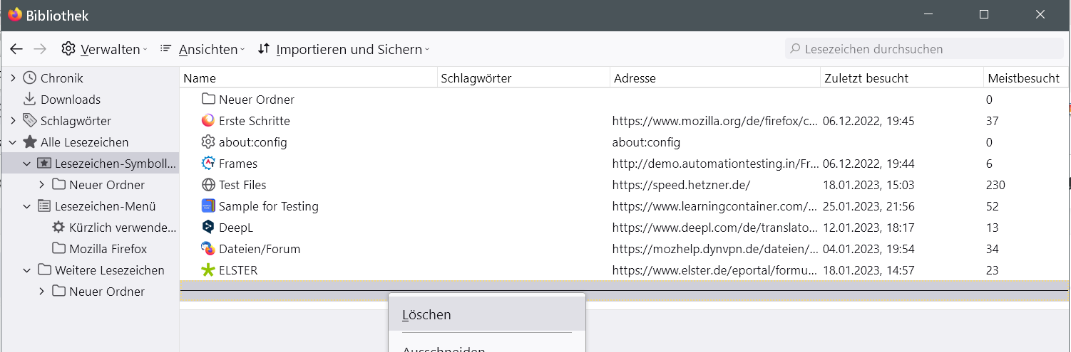 Lesezeichen verwalten => Lesezeichen-Symbolleiste