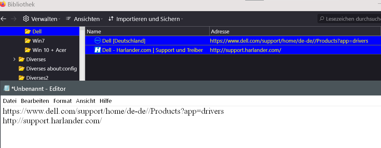 Zusatzfrage: wie kann ich es anstellen, wenn ich von den zuvor exportierten Lesezeichen vom PC1