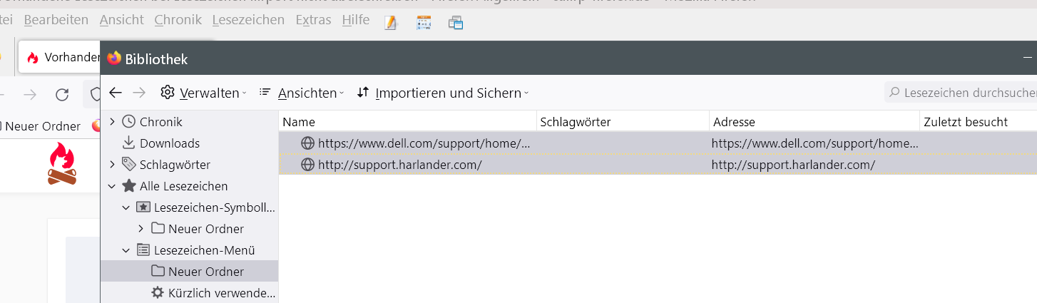 wie kann ich verhindern, dass die vorhandenen Lesezeichen beim Import der andern Lesezeichen verloren gehen?