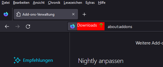 Der Seite about:downloads sowie einigen anderen haben den Selektor