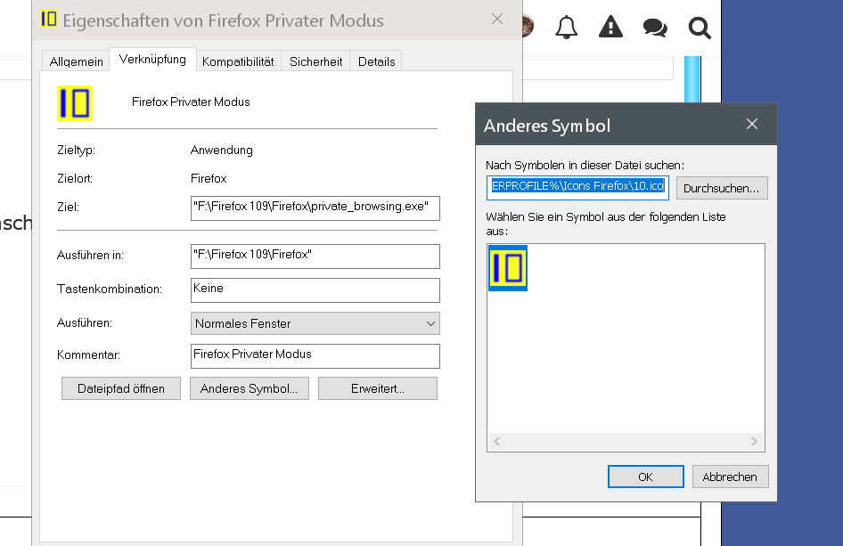 - Wenn man die privaten Fenster in einem eigenen Programmicon in der Taskleiste verwendet, ist es dafür möglich das angezeigte Programmicon zu ändern?