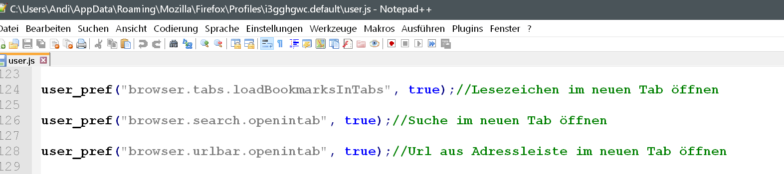 Änderungen dort sollte man immer per user.js machen, und dann einen kurzen Hinweis dazu schreiben.