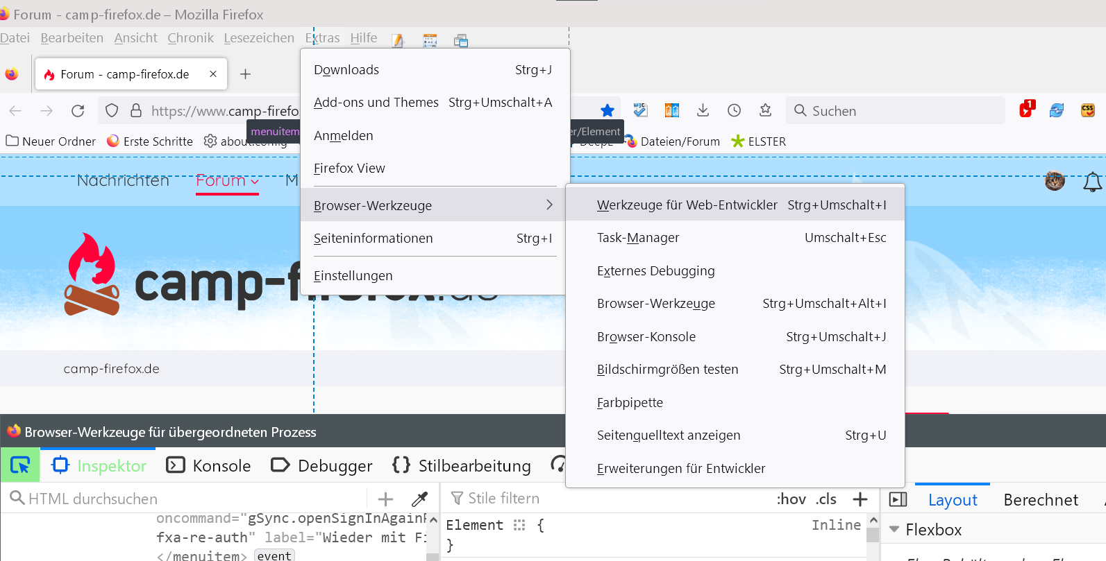 Eine Frage zu den Browserwerkzeugen : wenn ich in der linken (Html?) Spalte mit der Maus über einen Eintrag fahre, zeigt sich im Browserfenster ein Infopanel mit ein paar Basiswerten zu dem betreffenden Element .