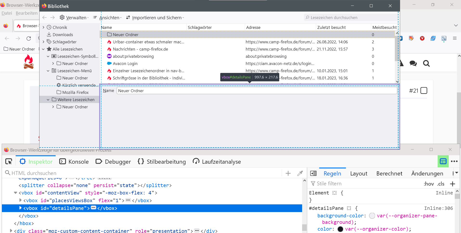 Also bei mir funktioniert es in Firefox 113.0a1 (2023-03-22) nach wie vor nicht, getestet mit der Bibliothek.