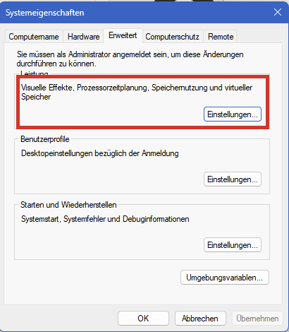 Drücke Win-Pause und klicke dann bei den verwandten Links rechts auf Erweiterte Systemeinstellungen.