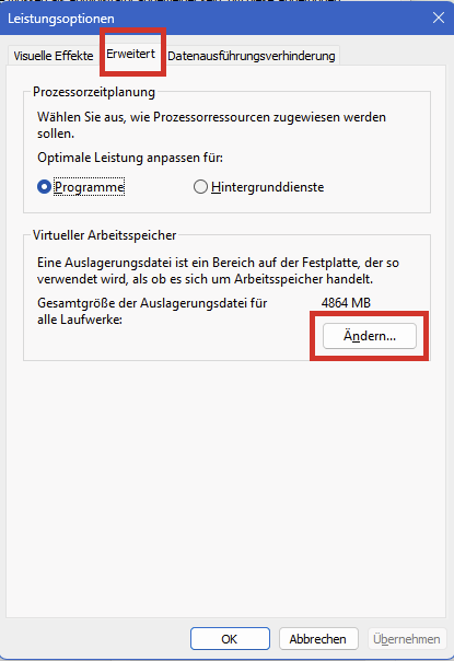 und auf der Registerkarte Erweitert auf Ändern: