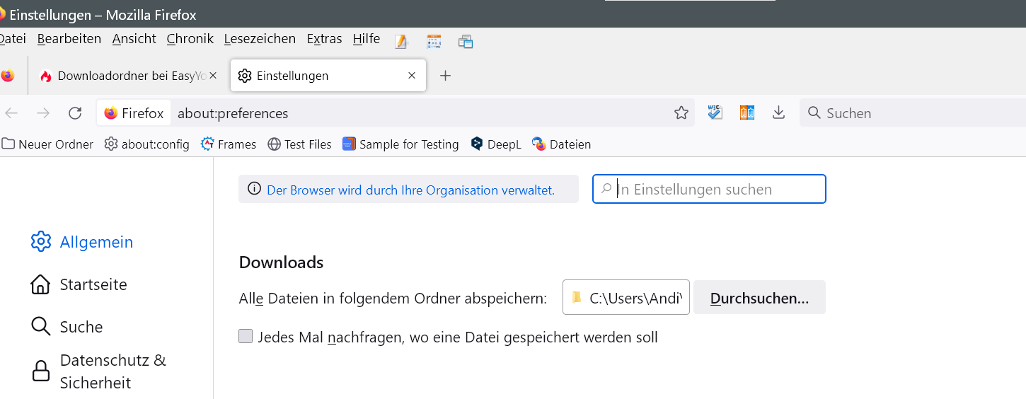 Oder ich hab den Ordner selbst irgendwann/irgendwie als Downloadordner festgelegt - aber keine Ahnung mehr, wie oder wo?