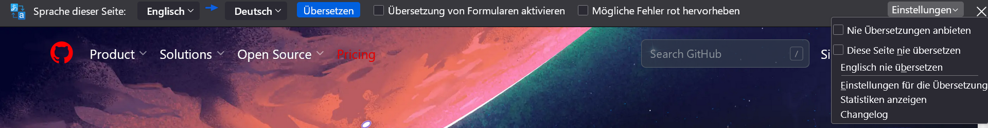 Trotzdem wird mir noch diese zusätzliche Leiste oben angezeigt, wenn ich z.B. die Seite von Github öffne.