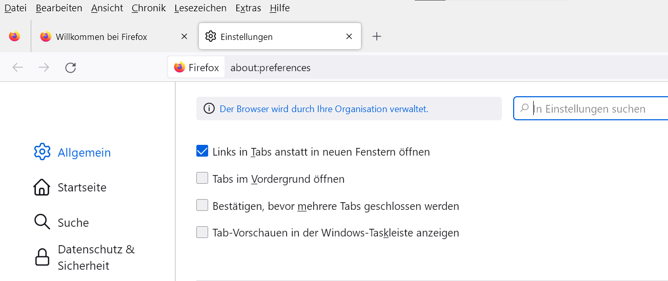 Seit Neuestem aber springt ff gleich in den neuen Tab.
