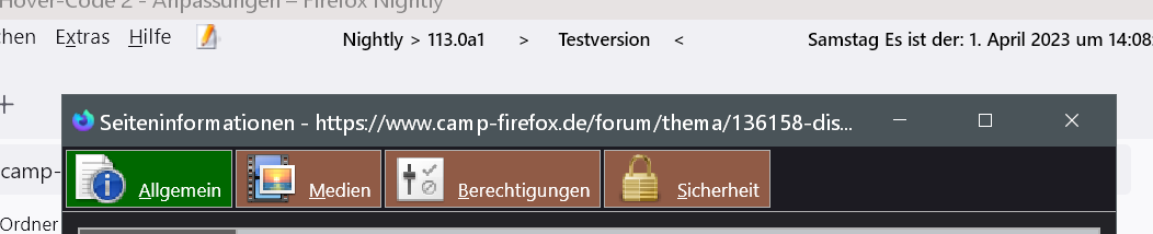 Nur um Missverständnissen vorzubeugen, und nach meinem Wissen: die erwähnten Änderungen im CSS Code für Nightly 113.x funktionieren generell nicht in Fx 111.x, also der aktuellen Release Version.
