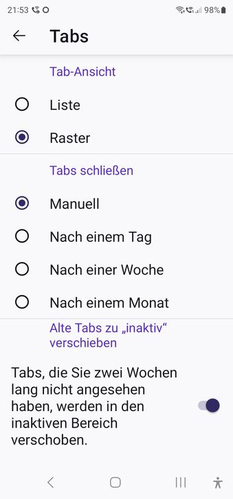 Hallo.... Ich finde den Firefox Android Browser toll.... Leider öffnet sich immer ein neuer Tab wenn ich etwas anklicke.... Ich möchte aber das alles in einem Tab geschieht.... Ich hoffe ihr versteht meine Frage und habt nen Tipp für mich... Vielen Dank