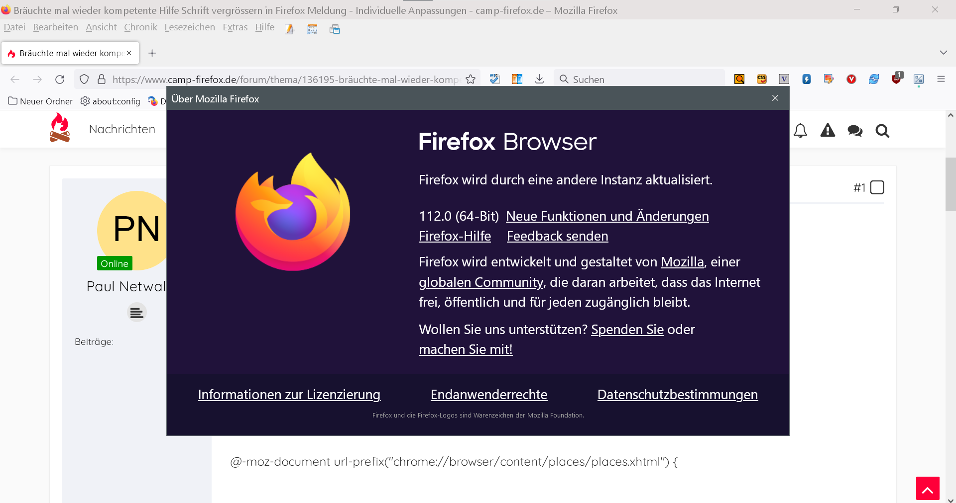 Mit welchen Befehl in der userChrome.css kann ich die Schrift in der Firefox Meldung vergrößern