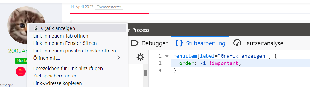 Ja, ein ähnliches addon habe ich schon gefunden, welches auch funktioniert, nur gefällt mir die Position in meinem Kontext Menü nicht (zu weit unten), das Grafik Anzeigen vom Script ist an richtiger Position (da wo alles mit Grafik kommt).