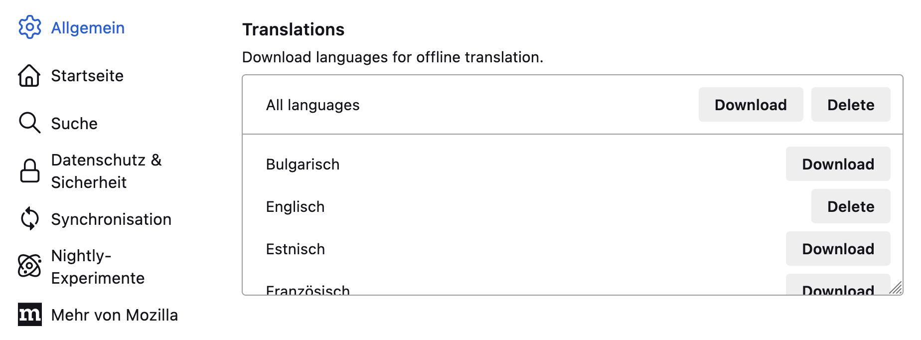 Native Integration von Firefox Translations kann getestet werden, später auch für Thunderbird?