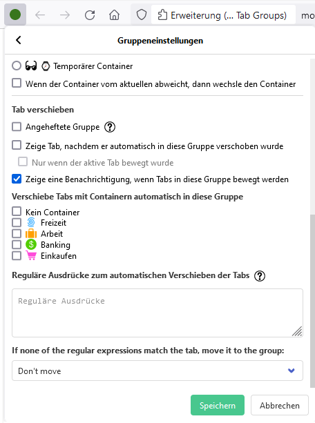ich habe mir die Erweiterung "Simple Tab Groups" zum Organisieren und Speichern von Tabs installiert.