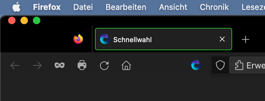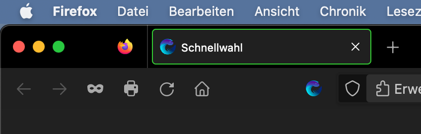 Wenn ich den Firefox auf meinem MacBook öffne, dann sieht der obere Bereich so aus.