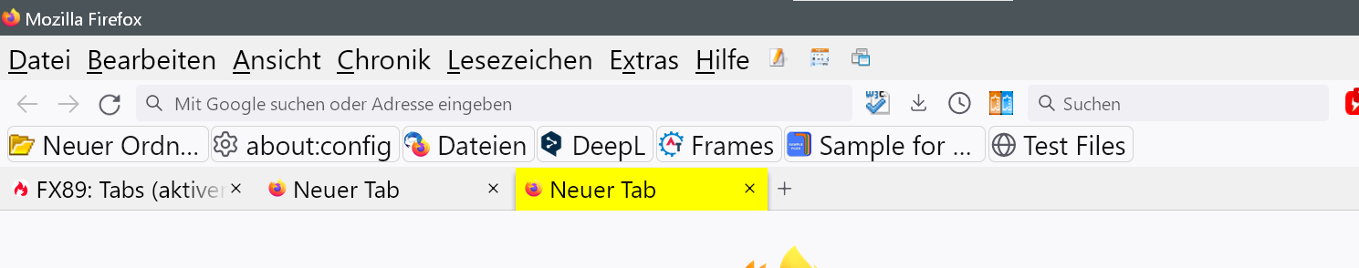 Die individualisierten Tabs (Breite, Höhe, Schriftdicke bei selected und not selected) stehen in meiner userChrome.css im Abschnitt