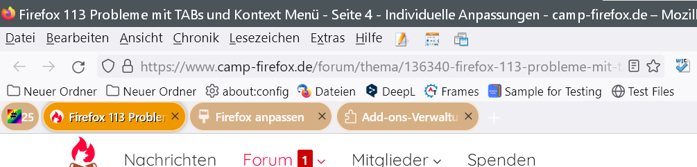 Firefox 113 Probleme mit TABs und Kontext Menü