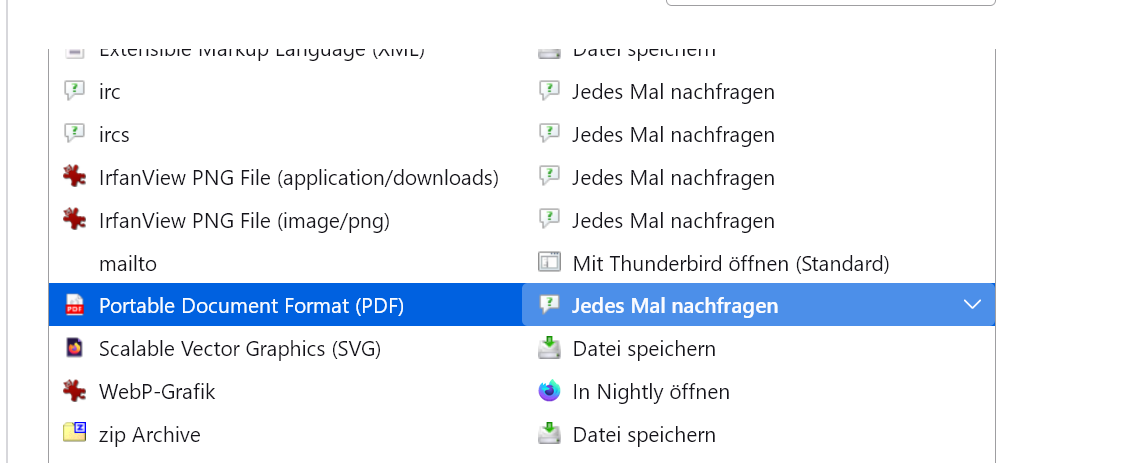 Das stimmt im Nightly, "Datei speichern", und wird dann mit verknüpftem Prog geöffnet. ![]()