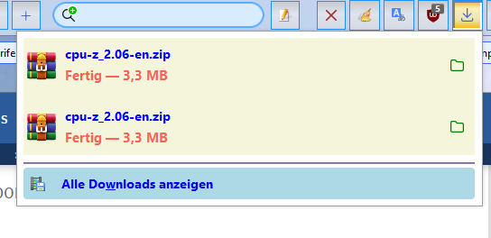 Bei den Download-Versuchen habe ich durch Zufall auf Computerbase immer cpu-z, das als zip-Archiv angeboten wird, probiert.