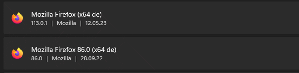wie ihr seht habe ich einen Eintrag von der Version 113.0 und der andere von der aktuellen Version 113.0.2 !